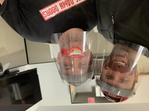 Best Damn Doors, who usually make kitchen cabinet doors, decided to change their manufacturing process during the epidemic to make face shields instead. They then approached Speedpro London, to ask if they would make funny and interesting decals for the shields. The idea was to add a little bit of fun and positivity during what has been a difficult time for everyone.