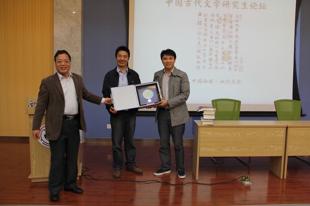 李芳民教授作为此次论坛开幕式主持人宣布“西北大学·复旦大学中国古代研究生论坛”正式开幕,并对议程作简要介绍。文学院副院长谷鹏飞老师首先为本次论坛致开幕辞,对远道而来的复旦大学老师及博硕士研究生表示热烈欢迎。随后,复旦大学中文系古典文学教研室副主任侯体健老师与我院长江学者李浩老师先后为本次论坛致辞,两位老师在致辞中从不同角度提到了此次论坛的重要意义以及对论坛成功举办的殷切希望。之后,两校互赠精美礼品并合影留念。