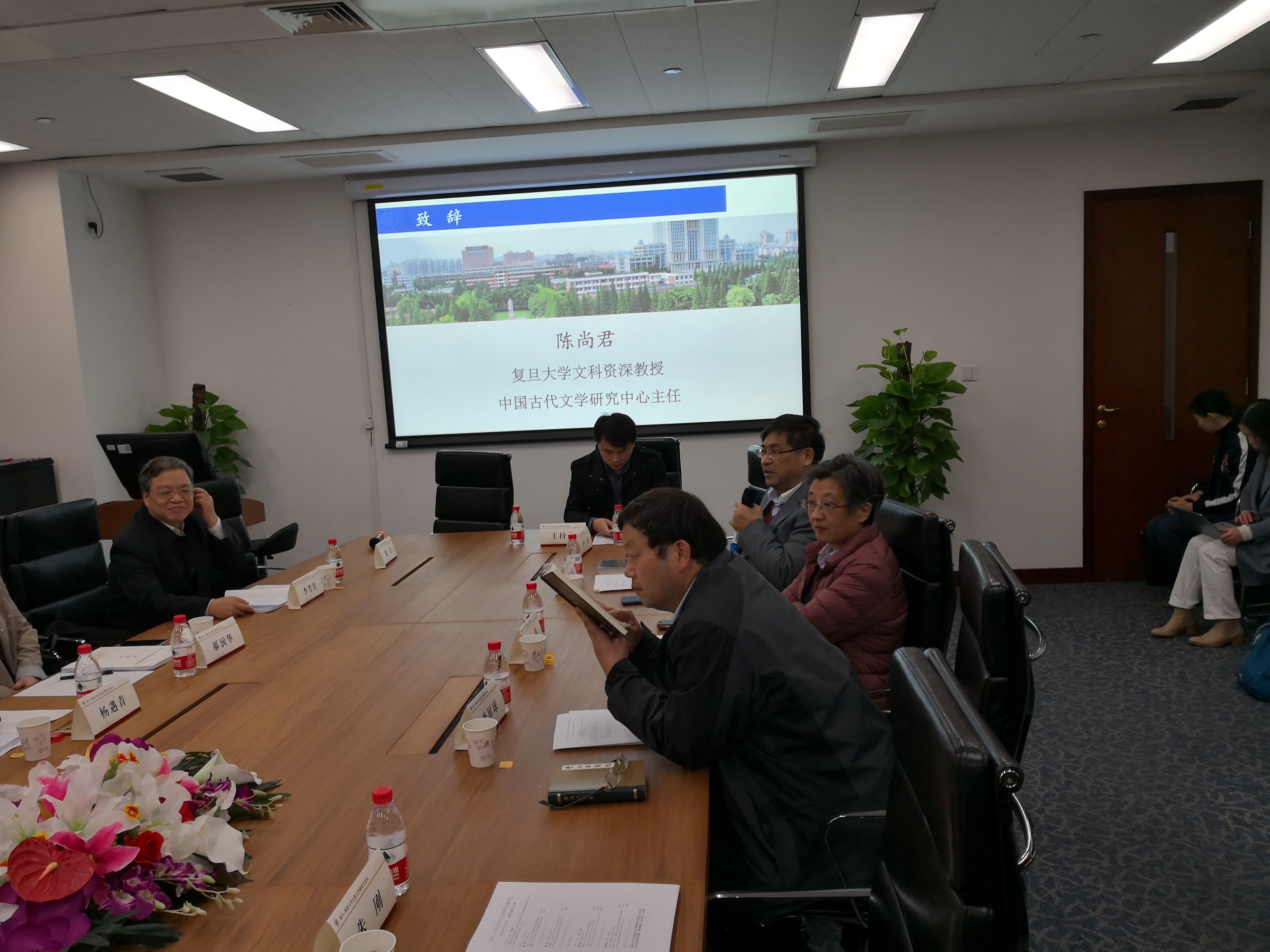 论坛结束后,我院师生参观复旦大学陈尚君教授工作室,与陈教授就治学方法、学术研究等问题作更深层次的交流,并与陈教授合影留念。