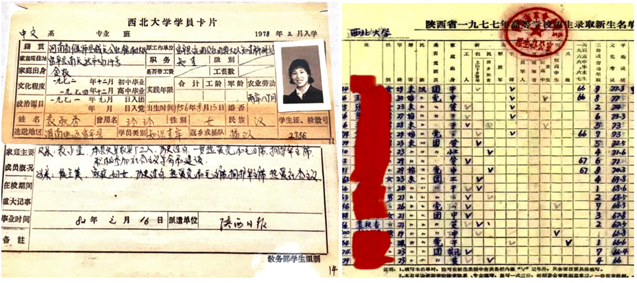 有同学的父亲参加过遵义会议,有同学背着地主崽子的包袱。有人是自带工资的干部,有人刚刚解下黄河岸边的纤绳。有人学富五车,有人高中都没毕业。年龄最大的31岁,最小的16岁。王纯是两个孩子的爸,小儿子与他一同入学,得意地告诉老师:我爸没有我考得好。张瑾是三个孩子的妈,上体育课的时候问老师:我可不可以让儿子来代替我做仰卧起坐。