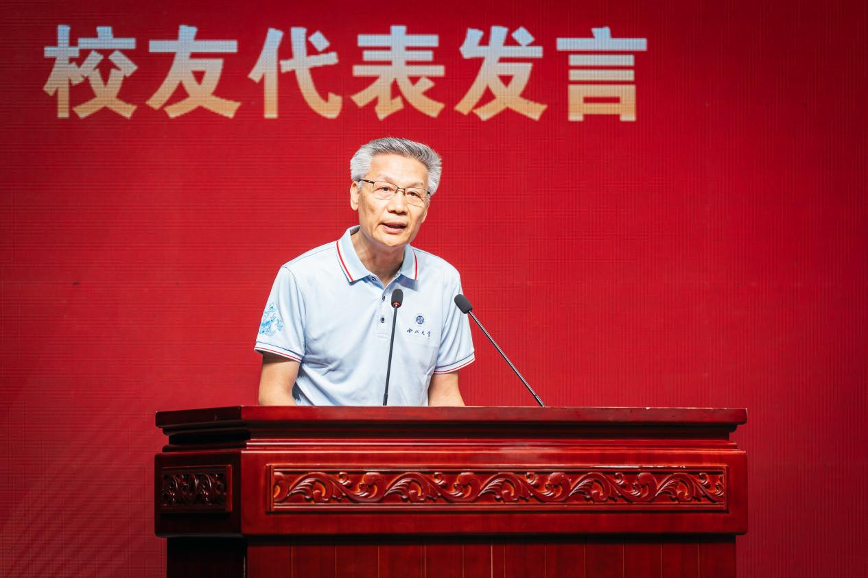 地质系77级学生、中国工程院院士赵文智在大会发言中深情地讲道:“再次踏进西大校门,仿佛光阴回溯。正是在这里,我们留下了激情燃烧的岁月,结下了深厚的师生情和同学情。我们汲取了知识营养,筑牢了人生奋进的底色,为日后成就自我、报效国家打下了坚实基础。”“饮其流者怀其源,学其成时念师恩,在这个值得纪念和珍藏的日子里,我们都特别感谢母校校训的引导:公诚勤朴!让我们一路走来始终如一,坚持以公去私,诚乃实矣,勤能补拙,朴实无华。老师们的谆谆传道之德,浩浩授业之恩,孜孜解惑之情,让我们终身难忘,永远报恩都难以回馈。”