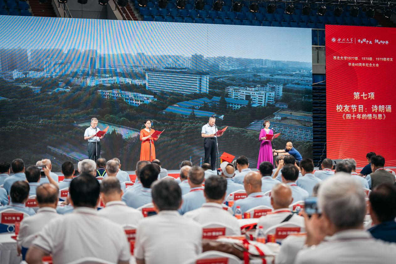 抚今追昔,饮水思源。“新三届”校友无比怀念40多年前在母校求学的难忘岁月,更加感佩命运给了他们最好的大学——西北大学。纪念大会上,校友精心创作激情朗诵的诗歌《四十年的情与思》,便是他们致敬母校感恩母校的真情告白: