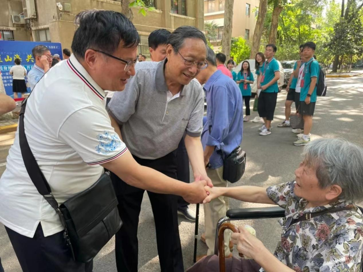 年近九旬的地质系薛祥煦教授,是一位道德学问俱佳、育人有方的金牌教师。她对学生慈母般关爱而又严格要求,她所指导的弟子连续获得前两届全国“百优”博士论文奖,成长为中国科学院院士。15日下午,她与同为地质系教授的邸世祥老师伉俪二人,坐着轮椅参加了师生座谈。会后,仍觉意犹未尽、情所难已。次日又致信“新三届”学子,提笔写下了《送给回校“探亲”的同学们》,信中写道:“亲爱的同学们,你们回母校‘探亲’,作为教过你们知识的老师,打心里感到温暖,满心的高兴。你们要回家或者回单位了,依依不舍啊!地质楼室内上课,汉中梁山野外实习苦与乐,我们一起度过!忆昔日,你们来求学,我们教书人求之不得。师生一条心,勤奋努力,认真负责,给今天留下了美好的回忆!谢今朝,师生有缘地质楼再相聚。好传统要发扬,好作风要传承,你们接过了火种,继续前进,难能可贵!我们放心,你们会比我们做得更好!又将别离,走向各自的工作岗位,祝愿啊,衷心祝愿,各位老与小健康、幸福、长寿,为祖国更强大继续作出更多更好的贡献!”一句三叹,满篇含情,暖人心扉,催人泪下。