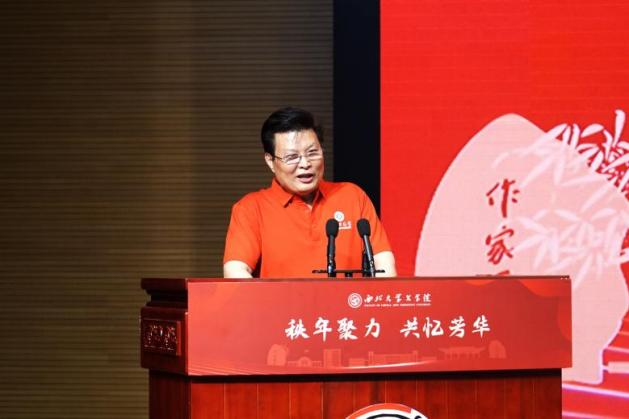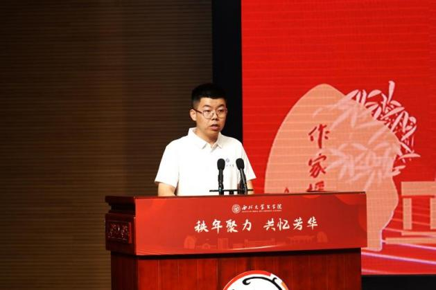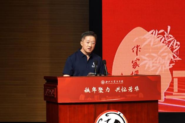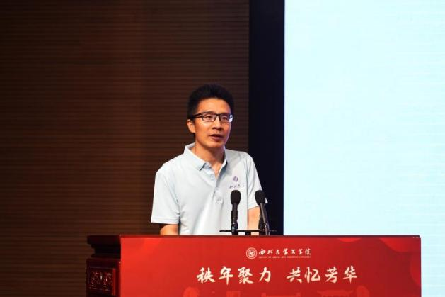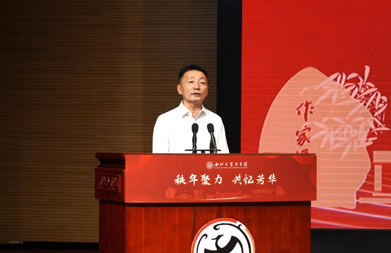 校党委副书记赵作纽总结讲话,他对校友们表示了热烈欢迎和诚挚问候,对大家长期以来对学校、学院事业发展的鼎力支持表达感谢。作为中文系87级校友,他回忆了自己在校求学的美好往事,以及在过往人生经历中西大精神的鼓励,对文学院的青年学子提出厚勉期望。