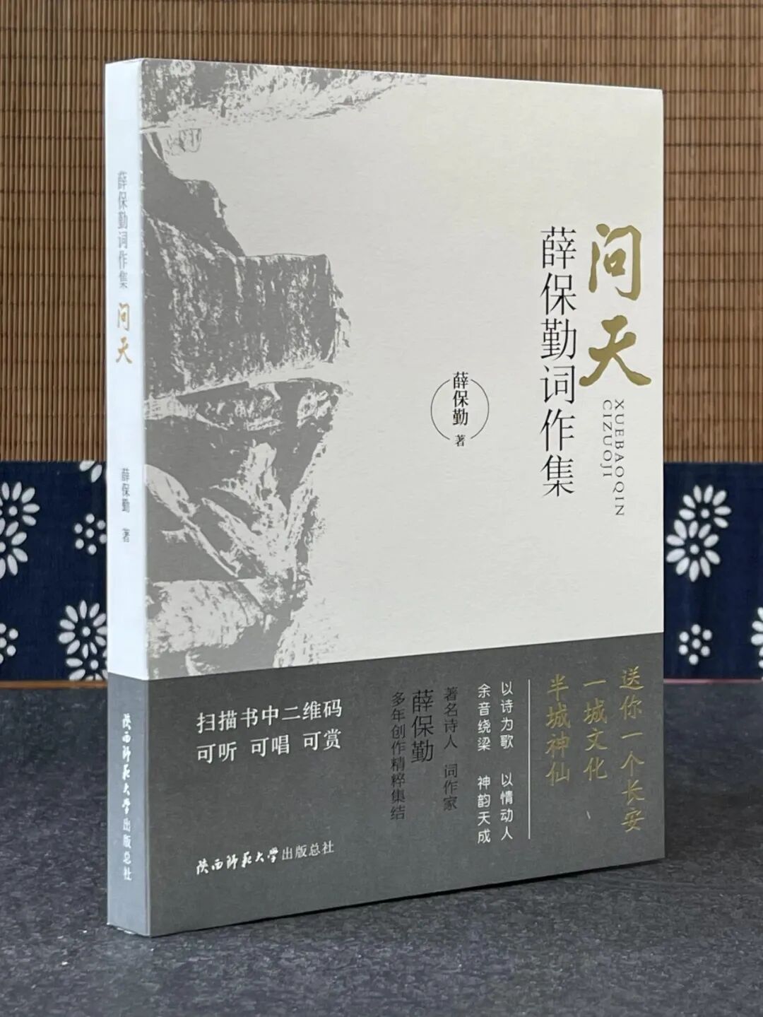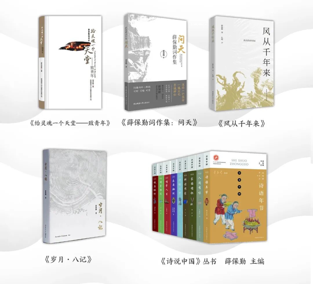 保勤不但能诗,而且能写一鸣惊人的歌词。与保勤有过几度合作的著名作曲家赵季平,在他为《问天——薛保勤歌词集》所作的题为《诗与歌之缘——保勤的词》序言中写道:优秀诗歌可读、可诵,有韵律、有节奏、有意境的诗还可以入歌。保勤的诗有着浓浓的中国传统文化底蕴,写得大气有深度!许多诗独具特色,直接可以唱。他把诗当作歌来写,把歌用诗来展现;将抽象的思想与主题用浅显的语言、巧妙的修辞、熟悉的意象来表达,寓意清晰且不流俗。我从他一直以来的作品中,感受到了他发乎于心的艺术冲动和孜孜以求的艺术追求。从《风从千年来》到《敕勒歌》,从《大秦岭》到《又见昆明池》……还有那首被西安人传唱至今的《送你一个长安》,歌中的“一城文化半城神仙”被广为引用,已成为西安的一张文化名片。