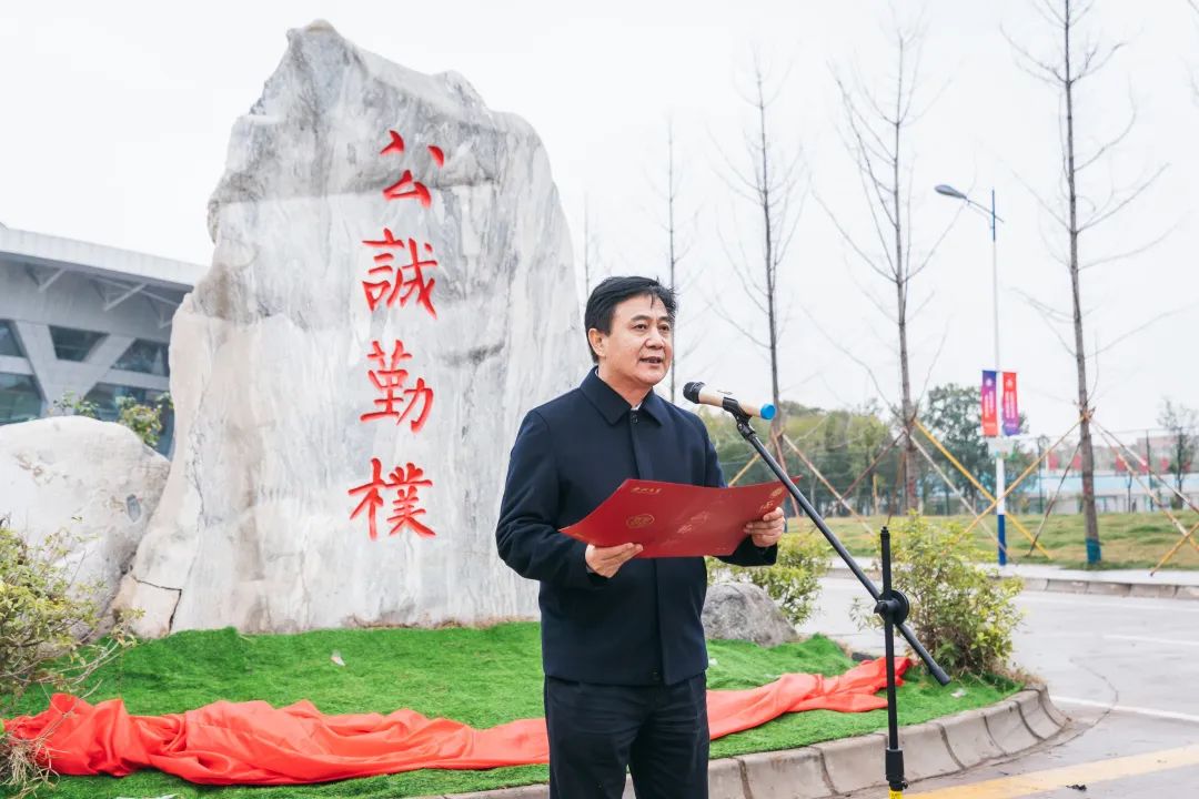 王亚杰书记在讲话中指出,“公诚勤朴”的校训精神饱含着我们对中华优秀传统文化和办学使命的深刻理解,体现着西大人的自信自强。20世纪80年代以来,文学院曾成功举办了三届“作家班”,培养了一大批成就斐然的文学大家,形成了“西北大学作家群”现象,在中国当代文学与陕西文学中具有举足轻重的地位,产生了深远影响。感谢我院1988级作家班校友心系母校,慷慨捐赠,传承“公诚勤朴”精神。长安校区的校训石将成为校园又一地标性文化景观,必将进一步激励全体西大人将“公诚勤朴”校训内化于心、外化于行,始终保持敢为天下先的非凡勇气、星火燎原的旺盛生命力,奋力书写新时代的西大崭新篇章!