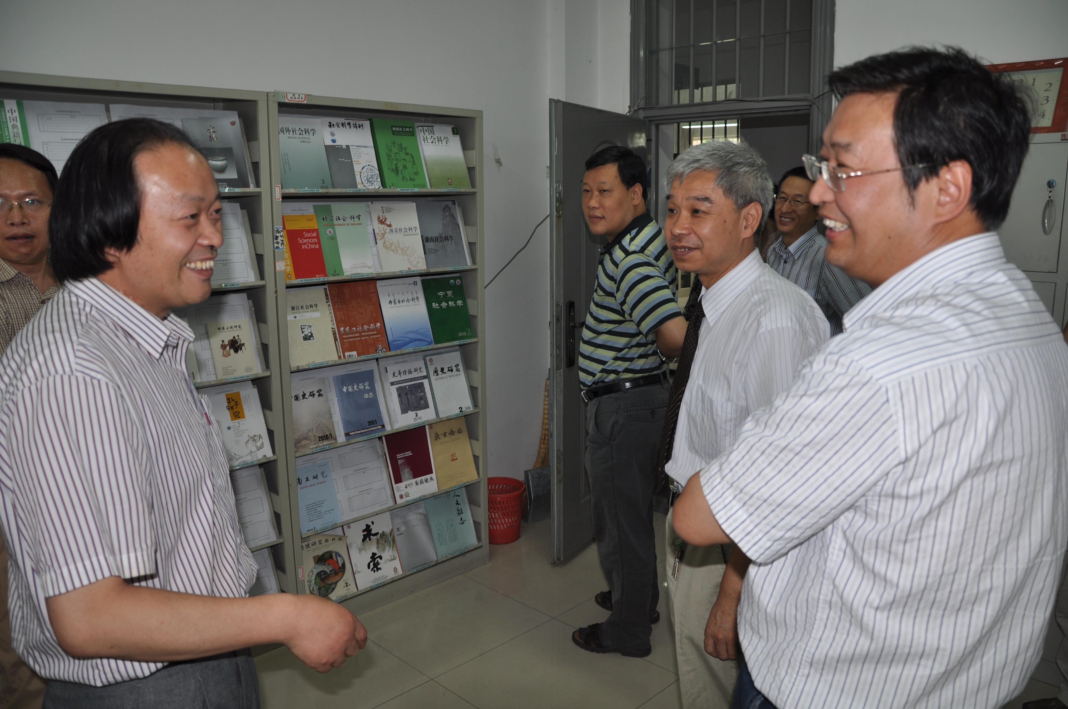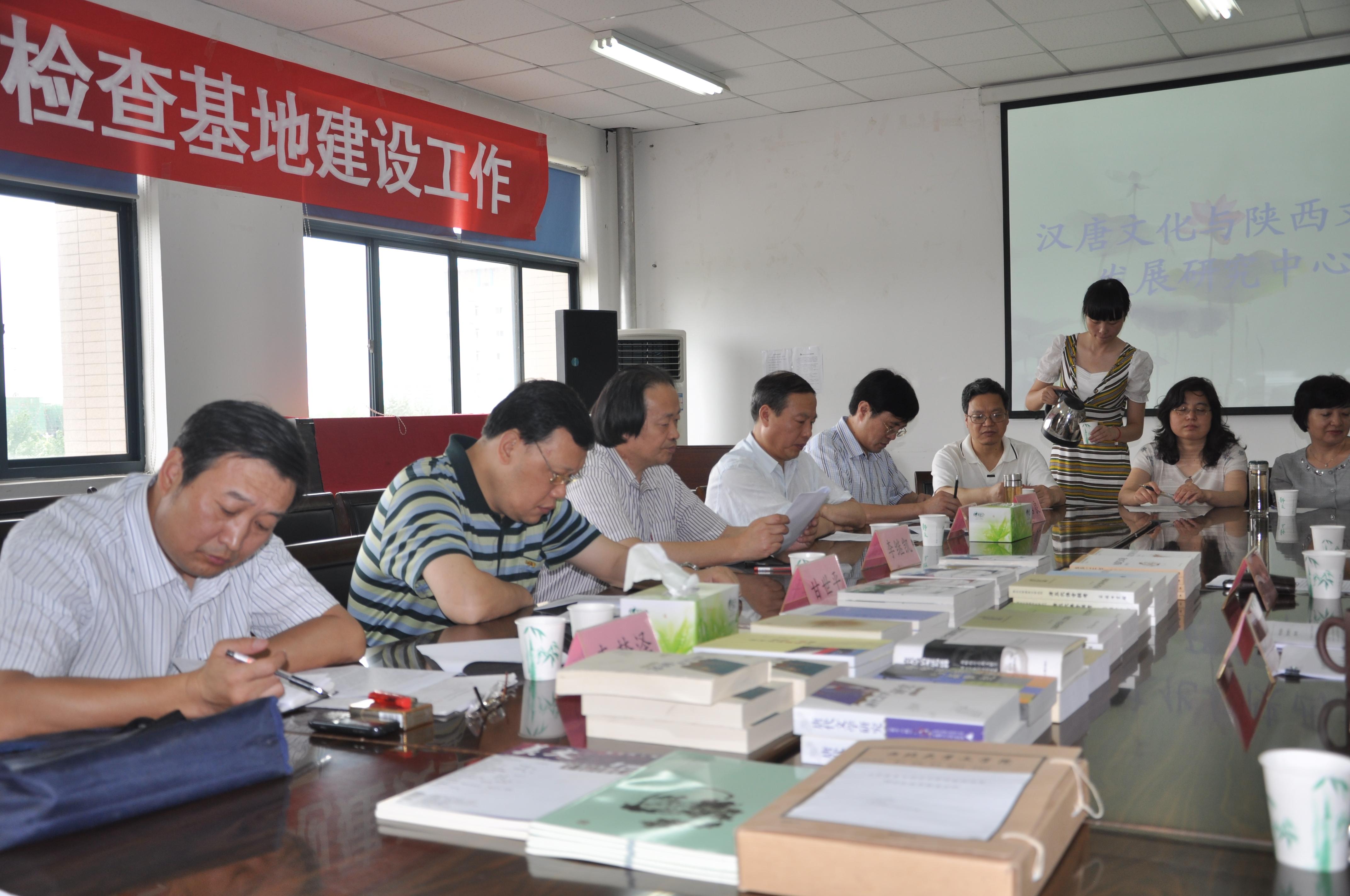 上午,陕西省教育厅专家组来到我院,对陕西(高校)哲学社会科学重点研究基地“汉唐文化与陕西文学发展研究中心”建设进展情况进行了检查。专家组听取了张弘教授的工作汇报,对中心办公室、图书阅览室、资料室、古籍库和专题研究室等相关硬件设施进行了全面考察,并与中心工作人员进行了座谈。专家组由省教育厅科技处甘世平处长、李梦泽调研员,陕西师范大学211办公室主任李继凯教授、文学院院长李西建教授、图书馆馆长付绍良教授等五人组成,校社科处处长刘丰、文学院党委书记赵强及部分中心工作人员参加了座谈。