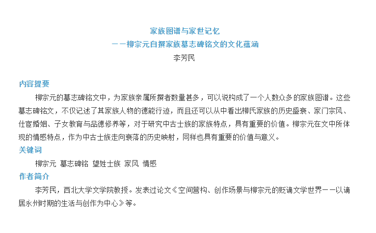 李芳民教授论文《家族图谱与家世记忆》在《文学遗产》发表