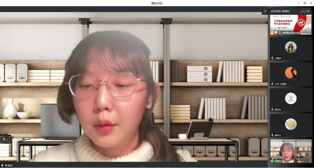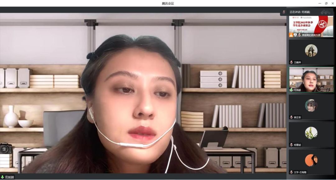 会上,同学们围绕暑期返乡的见闻进行了广泛交流,并就近期国际国内热点、社会民生问题、疫情常态化防控等问题进行了深入探讨。范旭颖同学向大家讲述了自己的“三下乡”社会实践经历和志愿服务经历,在这些具体的活动中,她更加明白了新时代青年应有的责任与担当;曹卓玉同学分享了疫情在校期间感受到的学校、学院的关怀,通过这些实例,进一步感受到学校是同学们的坚实后盾。