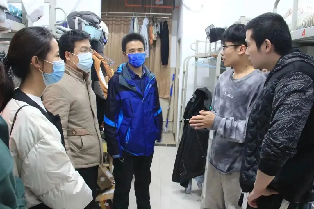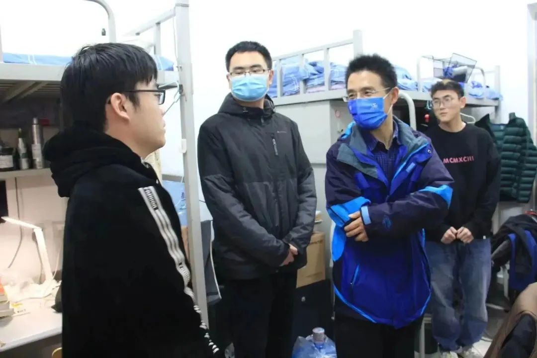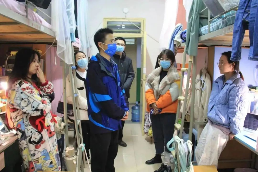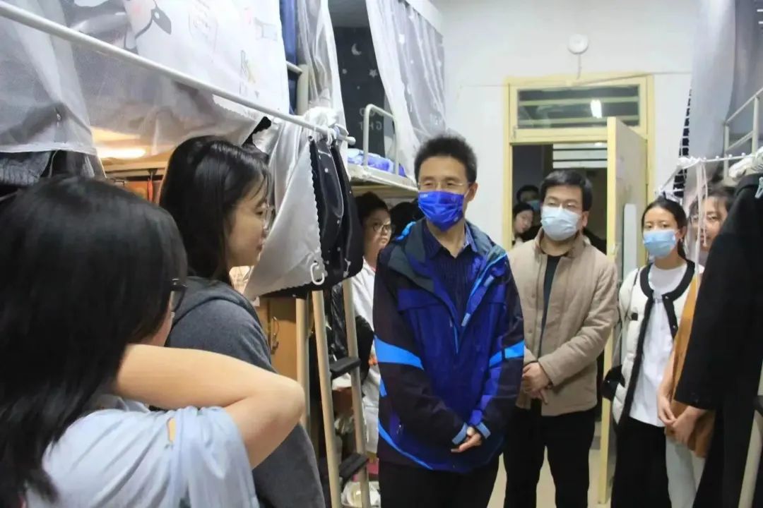 会后,院长谷鹏飞带领全体学工干部深入学生宿舍,就学生学习科研、体育锻炼、课余生活等方面进行了交谈,叮嘱同学们严格遵守学校疫情管理规定,及时反映问题,共同筑牢校园疫情防线。