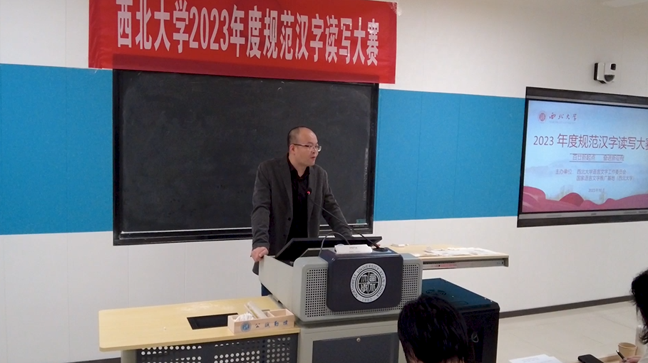 西北大学文学院冯鸽教授开幕致辞。她强调,本次比赛旨在弘扬中华优秀语言文字文化,提升同学们的语言文字能力,在日常学习生活中规范书写汉字具有重要性,同学们要重视正确书写和使用汉字,养成规范书写汉字、讲好普通话的习惯。文学院副院长陈然兴教授在闭幕致辞中指出,此次大赛主题鲜明、参与广泛,推进了推广普通话、规范使用汉字的工作,为提升国家通用语言文字的影响力贡献西大力量。