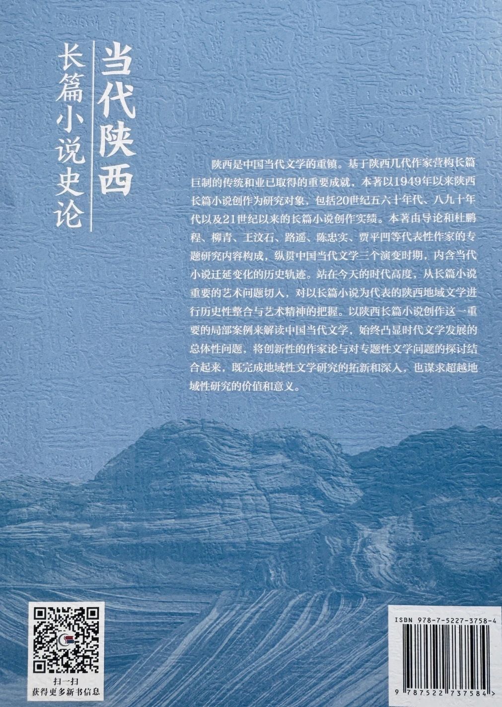 作为一名陕西籍的中国现当代文学研究者,从自己学术生涯开始之时,就身处文学大省鲜活热闹的创作现场中,必然会有关注和追踪,曾做过两项相关内容的陕西省社科基金项目,也有零散的文学批评和阶段性研究成果面世,但真正进入对陕西文学的集中和系统研究,是在获批这项国家社科课题之后。基于长篇小说在各类文学体裁中举足轻重的地位,和陕西在当代成为文学重镇的共识,课题选择了最能代表陕西文学辉煌成就的长篇小说创作为研究对象,在重新观照陕西文学群落、把握其长篇小说的思想艺术精神的同时,也试图以地域性的陕西文学为切入口,以具有典型意义的局部案例来解读中国当代文学,寄希望有创意和有成效的学术成果在“陕西地域文学”与“当代长篇小说创作”两个命题的遇合中生成,以拓新和深化陕西文学研究,进而观照中国当代文学的历史和现状。在整理书稿的过程中,除了凸显课题中的文学史问题意识和整体性把握特征,也照顾了作家作品研究的全面系统,并致力于旧作重读与经典淘洗,于是有了目前的作家论与史性阐述相结合的框架面貌。