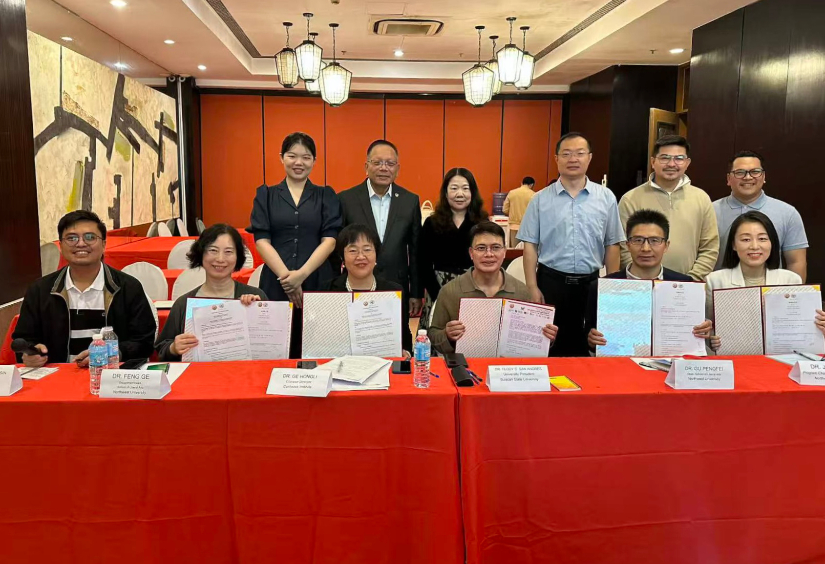 2026年1月10日至12日,2026中国-菲律宾语言教育与文化论坛暨海外实习基地共建签约仪式在菲律宾成功举办。布拉卡国立大学校长兼孔院菲方院长乔迪•桑•安德斯博士(Teody San Andres)、西北大学文学院院长谷鹏飞教授率双方院系负责人及实习工作指导教师出席活动。中国驻菲律宾大使馆文化参赞黄雅萍、二等秘书贾雁鹏、菲华商联总会副理事长兼文教委员会主任洪健雄(CO Kin Hung)、语合中心志愿者管理教师李佳丽等嘉宾到场见证。