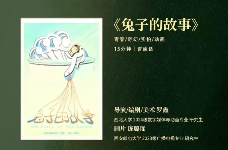 2024级数字媒体与动画专业研究生罗鑫担任导演的《兔子的故事》以“成人童话”为外壳,围绕希望与勇气,聚焦青少年成长话题。“实拍加动画”的影像形式传递细腻心绪,在童话与现实的彼此对话中传递力量和希望。