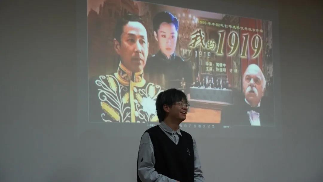 “中国不能失去山东,就像西方不能失去耶路撒冷!”本次放映的电影《我的1919》讲述了在1919年的巴黎和会上,就一战胜利后中国山东省的归属问题,外交才子顾维钧作为中国政府全权代表,与列强坚决抗争的种种过程,以及爱国志士肖克俭舍身为国的悲壮之举。影片中先辈们的爱国事迹使观影同学深切感受到了中华民族贫贱不移、威武不屈的民族精神,激发了同学们强烈的爱国主义情感,引发了同学们关于爱国精神和青春意义的深刻思考。