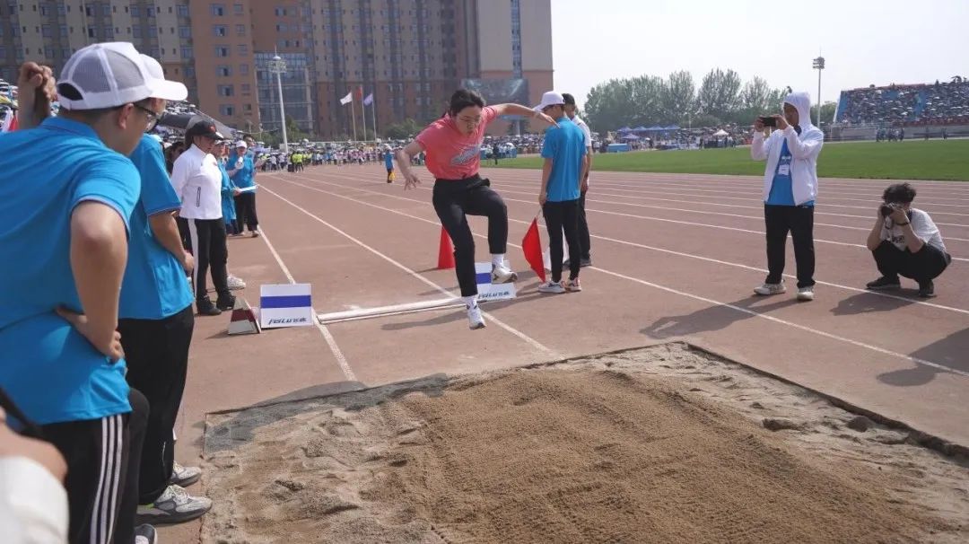(教工 · 跳远 挥臂起跳,腾空收腿,身姿轻盈如飞燕)