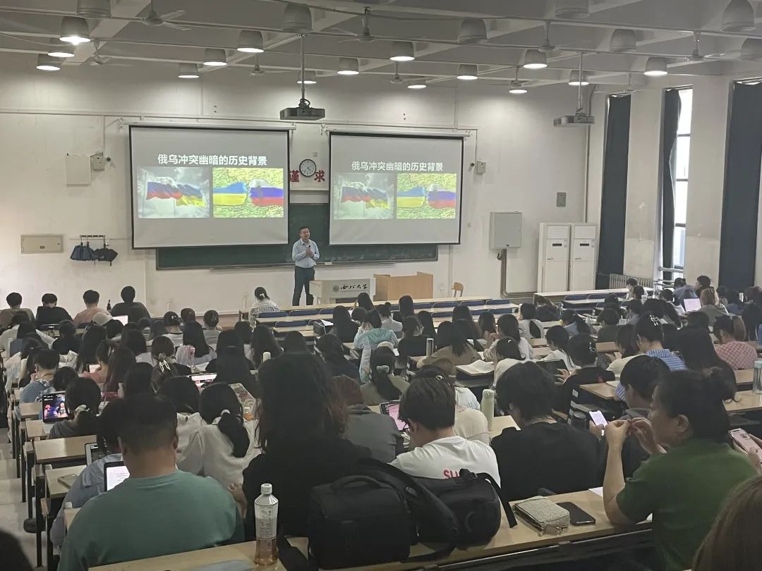 国家安全是安邦定国的重要基石,维护国家安全是全国各族人民的根本利益所在。为进一步普及国家安全相关知识,增强学院学生的国家安全意识,引导学生做到自觉维护国家安全,5月16日下午,西北大学党委办公室、校长办公室、稳定办公室主任周超受邀为我院2021级全体同学讲授了题为《俄乌冲突幽暗的历史背景和现实影响》的形势与政策课。