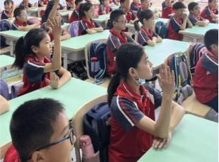 活动第一项是“推普”问答,小朋友们磨拳擦掌,热情高昂,积极参与问答活动,回答了诸如:“什么是推普周?推广普通话就是不让说方言吗?”之类的问题,党员同志们通过问答的形式让小学生深入了解了普通话和汉字的性质以及推广普通话政策的知识,发挥“党带队”作用,将党的政策和文化精神传播到少先队中去。