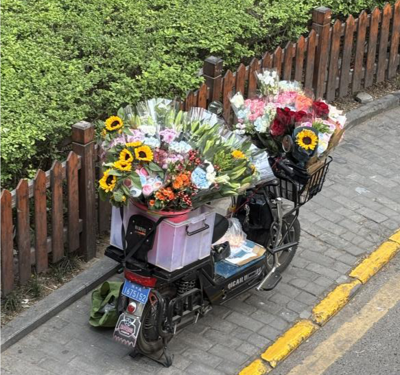休息日这一天,伴随着五月温热的风走在西安的街头。休息意味着漫无目的,但总归要思考一下下一站的目的地。走在天桥上,看着来来往往行驶的车辆,脑袋里闪过下一站目的地的样子,但总归是模糊不清的。从天台楼梯走下的一瞬间,我看到一辆装载着鲜花的电动车,脑袋里的画面具像化,像一道烟花在天空炸开,欣喜若狂。