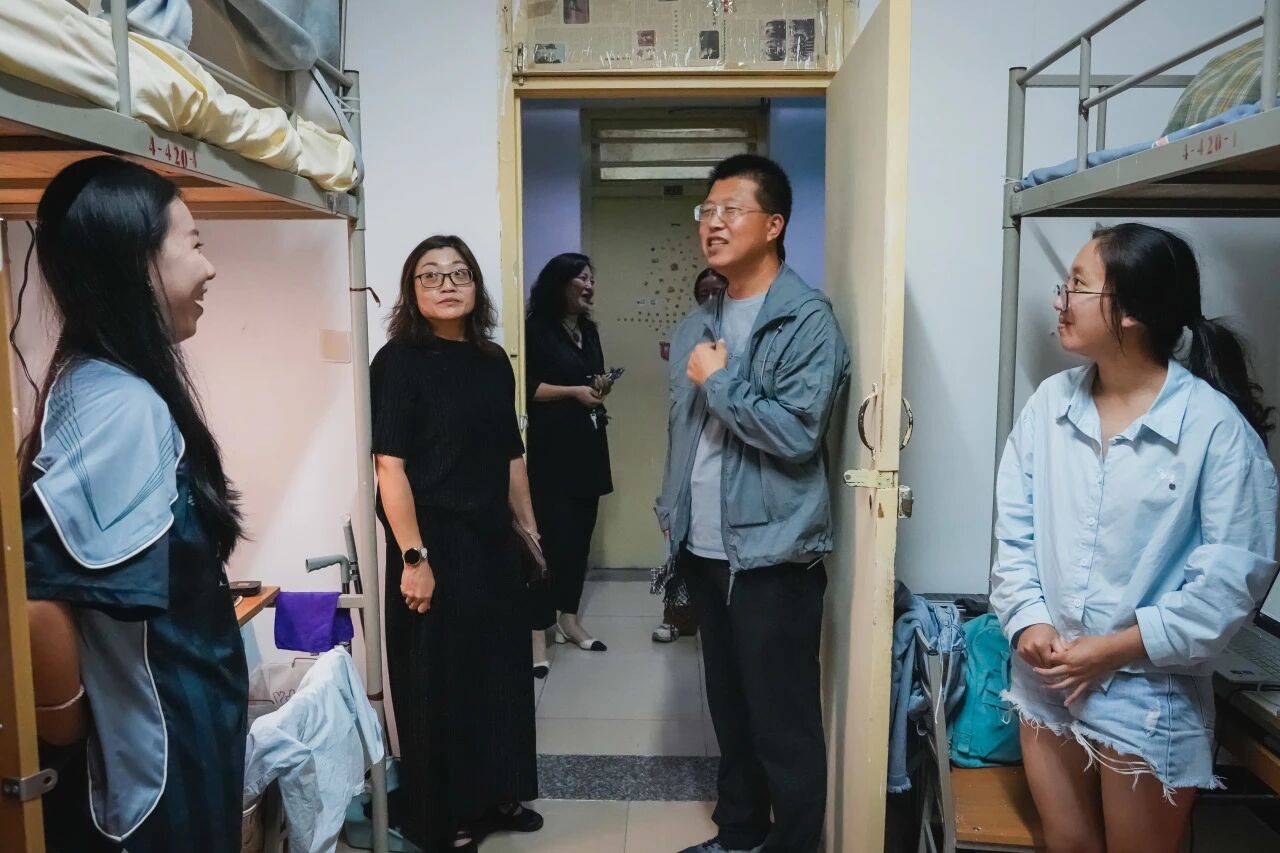 为全面了解新生入学情况,传递学院关怀,帮助同学们更好地融入大学集体生活,院党委书记姜宇,党委副书记陈柯,副院长杨遇青、陈晓辉、雷振宁,工会主席高字民,院长助理、广播电影电视系主任巩杰,以及全体辅导员走访了新生宿舍。走访过程中,学院老师与新生及家长热情交流,详细询问了同学们在入学报到后的实际感受,耐心解答新生的疑问,鼓励新生尽快熟悉校园环境、转变角色,在集体生活中相互学习、互相包容,大胆尝试、积极实践,用心绘就大学阶段新篇章。