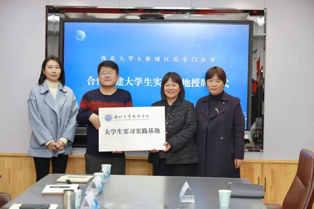 就创中心常务副主任丁莹莹、文学院党委副书记陈柯和数学学院副院长邵勇为后宰门小学授牌,设立“大学生实习实践基地”,标志着双方长期稳定的社会实践与实习合作关系正式确立。