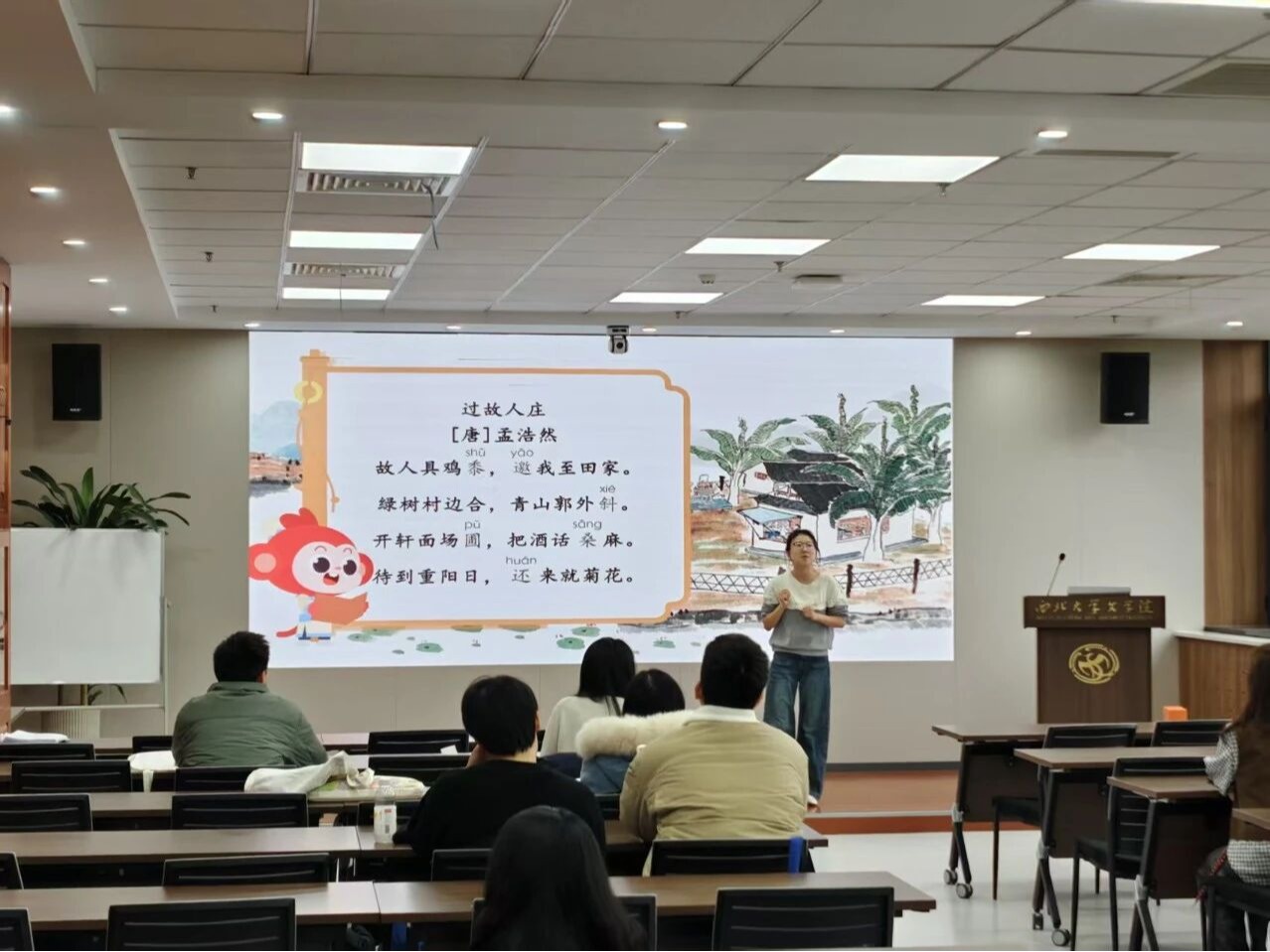 随后,高圆圆老师以古诗《过故人庄》为例,展示了小学语文教学如何兼顾趣味性与知识性;尹本田老师则通过“年龄和倍问题”,演绎了如何运用线段图等工具将抽象的数学概念具象化。两位老师的示范课逻辑清晰、互动巧妙,展现了深厚的教学功底。在经验分享环节,老师们从面试流程、试讲技巧、仪表仪态到答辩策略进行了全面拆解,帮助学生系统梳理面试各环节的应对策略。