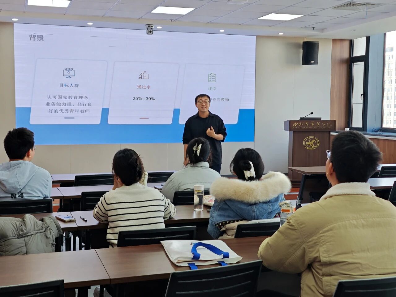 12月4日,赵希老师以“面试结构化问答”为主线,围绕常见题型进行深入剖析,结合教育热点与真实面试场景,讲解答题思路与应变策略,引导参训学员构建逻辑清晰、表达流畅的应答框架。通过模拟问答与即时反馈,帮助学生在压力情境下保持思维敏捷与情绪稳定,展现教育理念与职业素养。