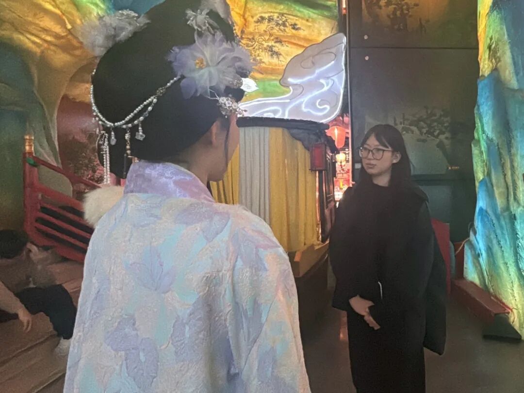 作为沉浸式文旅的标杆项目,长安十二时辰成为团队学习借鉴的重要阵地。队员们全程体验唐风剧本杀,细致观察场景搭建的细节、剧情设计的逻辑以及互动体验的形式。随后,团队组织内部创作工作坊,将西周历史、诗经文化与学到的沉浸式玩法相结合,分工推进剧本杀的角色设定、剧情框架和场景设计,让传统文化在互动体验中焕发新活力。
