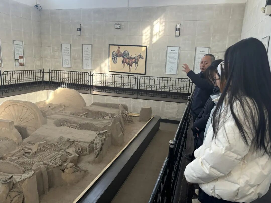 在丰镐遗址,场馆负责人的专业讲解,让队员们得以近距离感受西周都城的历史底蕴。两天时间里,团队实地考察了遗迹、墓葬区和手工业作坊等核心区域,用相机记录下夯土城墙的纹路、器物遗存的形制,详细标注遗址布局与功能分区。队员们一边聆听西周社会结构、礼仪制度的相关介绍,一边认真记录要点,收集了大量可用于剧本创作的实证素材,为后续内容创作奠定了坚实的历史基础。调研结束后,团队与负责人合影留念。