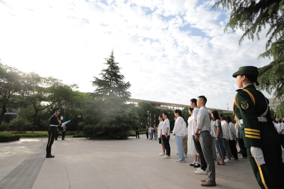 2021年5月24日上午,我院与学校国旗护卫队于长安校区北广场联合举行“重温入党誓词,不忘初心,牢记使命”庆祝建党100周年主题活动。文学院本科生党支部书记殷大惟老师、学生党员和入党积极分子、院青马班成员参加了此次活动。
