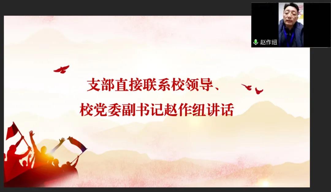 为深入学习贯彻习近平总书记关于党史学习教育的重要指示、重要讲话精神,深入学习贯彻党的十九届六中全会精神、巩固深化党史学习教育成果,引导党员不忘初心、牢记使命,做抗疫的行动者,在抗疫中砥砺品格意志,充分发挥党支部战斗堡垒作用,2022年1月11日晚,文学院2020级硕博党支部线上召开“党史上的今天”主题党日活动。活动由党支部书记杨萌主持,支部直接联系领导、校党委副书记赵作纽,院党委书记姜宇、副书记陈柯、组织员张昊参加了本次活动。