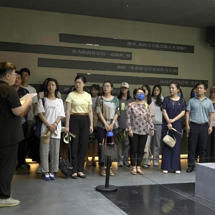 在中国共产党成立101周年之际,为深入学习贯彻习近平总书记关于学习柳青精神的重要论述,巩固拓展党史学习教育成果,充分发挥基层党组织战斗堡垒作用和广大党员先锋模范作用,将党史与革命文学史有机融合,充分发挥文学院专业特色优势。6月30日,文学院中国现当代文学学科团队党支部、语言学学科团队党支部与行政党支部赴长安区柳青文学纪念馆、柳青故居联合开展“学习柳青精神,传承红色基因”主题党日活动。