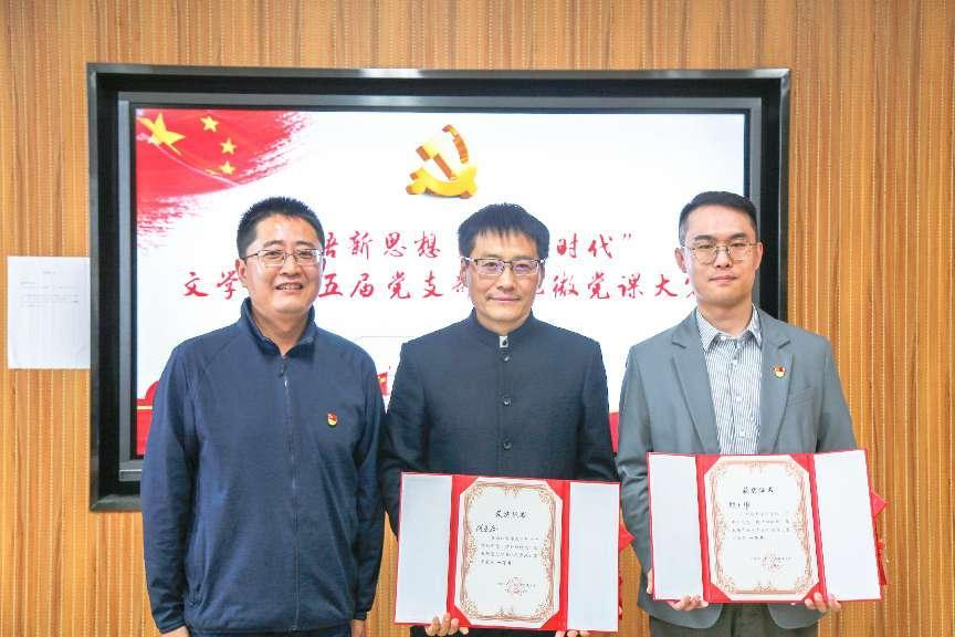 最终,经过现场评审,本次比赛评出一等奖2名、二等奖3名、三等奖4名。党委副书记、院长谷鹏飞,院党委书记姜宇,校党委组织部副部长杨红涛依次为获奖选手颁奖并合影留念。