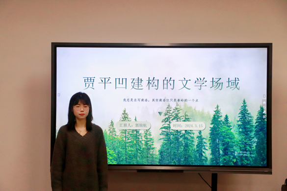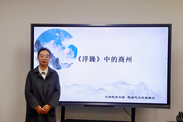 在读书会上,支部积极分子郭锦航以贾平凹作品中的秦岭为基点来观察中国、观察世界,将贾平凹先生的文学场域分为客体的文学场域、审美的文学场域以及形式的文学场域三个部分,认为贾平凹先生后期创作中现实的世界和虚构的世界相互激励、共同增长,这种虚实相生的创作方式,在文学层面敞开了更多可能,也给读者带来对秦岭这个文学场域的生命力与开放性的期待。以路遥、陈忠实、贾平凹为代表的陕西当代作家笔下的乡土题材作品,重墨展现了改革开放以来陕西乡村的腾飞发展和巨大变化,给正在奋力谱写高质量发展新篇章的陕西,注入了深厚的文化内涵和澎湃的精神动力。积极分子康静蕊围绕贾平凹的《浮躁》进行分享。她对《浮躁》中体现的商州地区的文化特色做了分析,透过《浮躁》中大量对商州地区的民风民俗的描写,领略商州地区的风土人情。康静蕊认为“浮躁”既是书中人物情绪的共性,也是一种概括,概括出了时代骚动不安而又充满生气的精神特征,而作者将这种浮躁情绪放在一个特定时代的人文环境中加以考察,将文学、时代与商州联系在了一起。