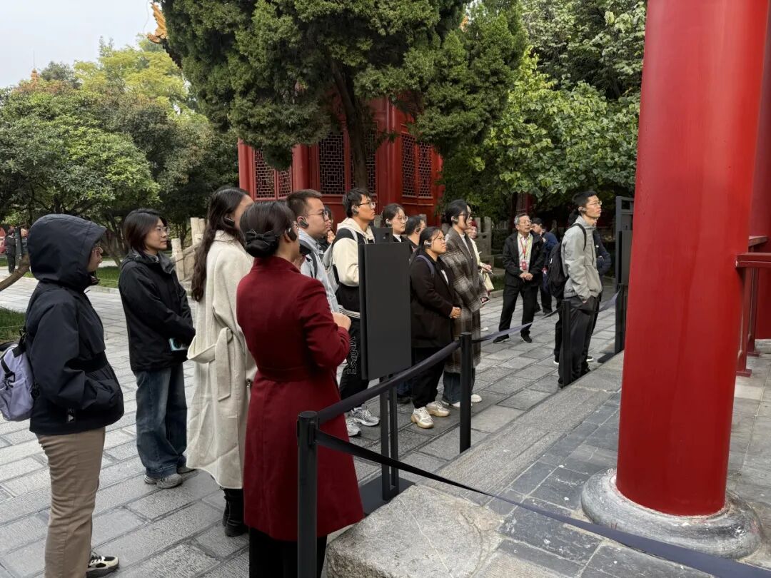 师生党员驻足碑林广场的《石台孝经》。此碑由唐玄宗李隆基亲自书写,以“孝”为核心要义,而“孝”作为儒家伦理的基石,延伸至为官理政层面便是“忠”与“仁”,即对国家忠诚、对百姓仁爱,这正是治国理政的根本前提,也为党员干部树立了“修身齐家治国平天下”的思想标杆。