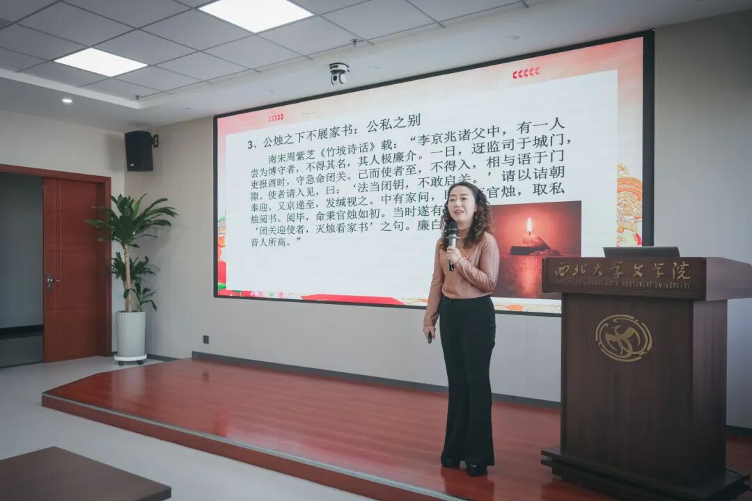 成明明同志以《烛照中华继绝学,笔耕学林育桃李》为题讲授微党课。课程以“烛火”这一富含传承意味的文化意象为脉络,深入阐释了屈原、陶渊明、杜甫、苏轼等先贤所秉持的高尚品格与伟大精神,深刻揭示了其穿越时空的文化价值。本次微党课是支部教师党员深耕学术、将中华优秀传统文化创造性融入党员教育实践的生动体现。