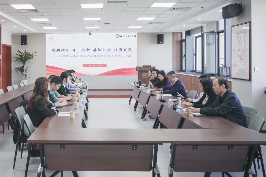 9月24日下午,文学院古典文学与文献教师党支部举办以“躬耕教坛 守正创新 赓续文脉 强国有我”为主题的党日活动,集中学习了习近平总书记在2025年教师节前夕给全国特岗教师代表的回信,学习传达了中省和校党委总结深入贯彻中央八项规定精神学习教育有关会议精神,交流研讨了2025年第8期《求是》杂志刊发的习近平总书记重要文章《加快建设文化强国》。校党委书记蒋林到会指导,支部联系院领导姜宇列席会议。本次活动由党支部书记周喜存主持。