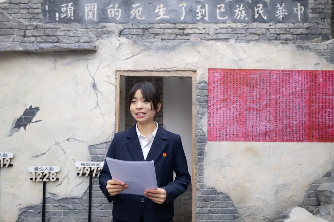 活动最后,全体成员在胡冠琼同学的带领下,面向团旗,庄严重温入团誓词。铿锵的誓言回荡在纪念馆中,提醒着每一位团员不忘初心、牢记使命,将爱国之情、报国之志转化为实学实干、砥砺前行的不竭动力。