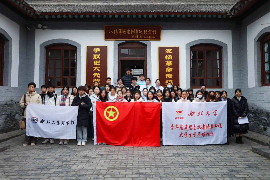 为深入学习党的二十届四中全会精神,贯彻落实习近平总书记关于青年工作的重要思想,引导青年学子坚定理想信念、传承红色基因、勇担时代使命,在纪念中国人民抗日战争暨世界反法西斯战争胜利80周年之际,12月20日,文学院2025级本科各班级团支部联合校“青马工程”知行一班团支部赴八路军西安办事处纪念馆,开展“传承红色血脉,厚植爱国情怀”主题团日活动。文学院专职团干部、校“青马工程”知行一班班主任杨崧维,文学院2025级本科各班级团支部团员代表,校“青马工程”知行一班全体学员50余人参加活动。活动由胡冠琼同学主持。