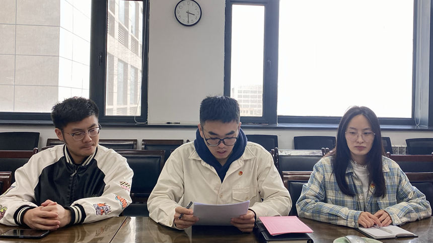 会议第二项,院团委书记石琬璐宣读了《共青团西北大学文学院委员会对成立共青团西北大学文学院研究生会党支部委员会的通知》,强调研究生会团支部要推动团建与学生日常工作协调并进,认真履行引领凝聚青年、组织动员青年、联系服务青年的职责,加强思想政治引领和价值引领,规范落实“三会两制一课”制度。