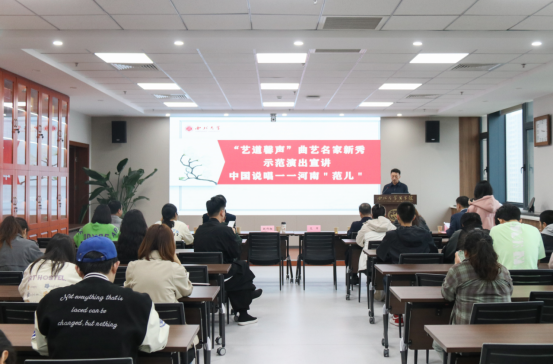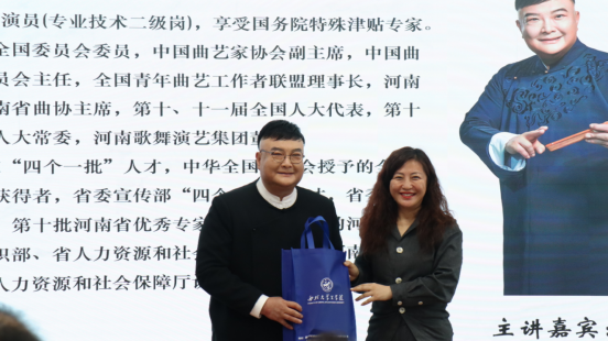 为传承中华优秀传统文化,弘扬中华美育精神,中国曲艺家协会推出了“艺道鑫声”曲艺名家新秀示范演出宣讲行动。4月1日下午,示范演出宣讲活动走进陕西西安,中国曲艺家协会副主席、河南省曲艺家协会主席范军做客西北大学“名家讲坛”,为师生们带来了题为《中国说唱----河南“范儿”》的艺术美育讲座。讲座由陕西省曲艺家协会副主席、西北大学文学院高字民副教授主持。