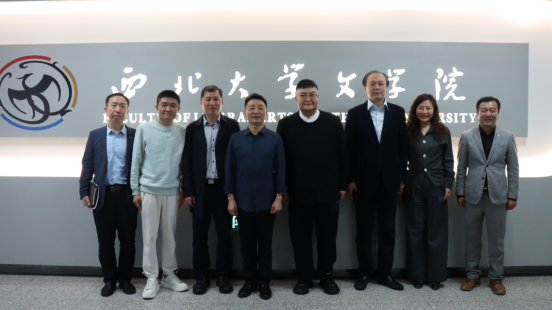 西北大学文学院党委书记姜宇向范军赠送纪念品并合影留念