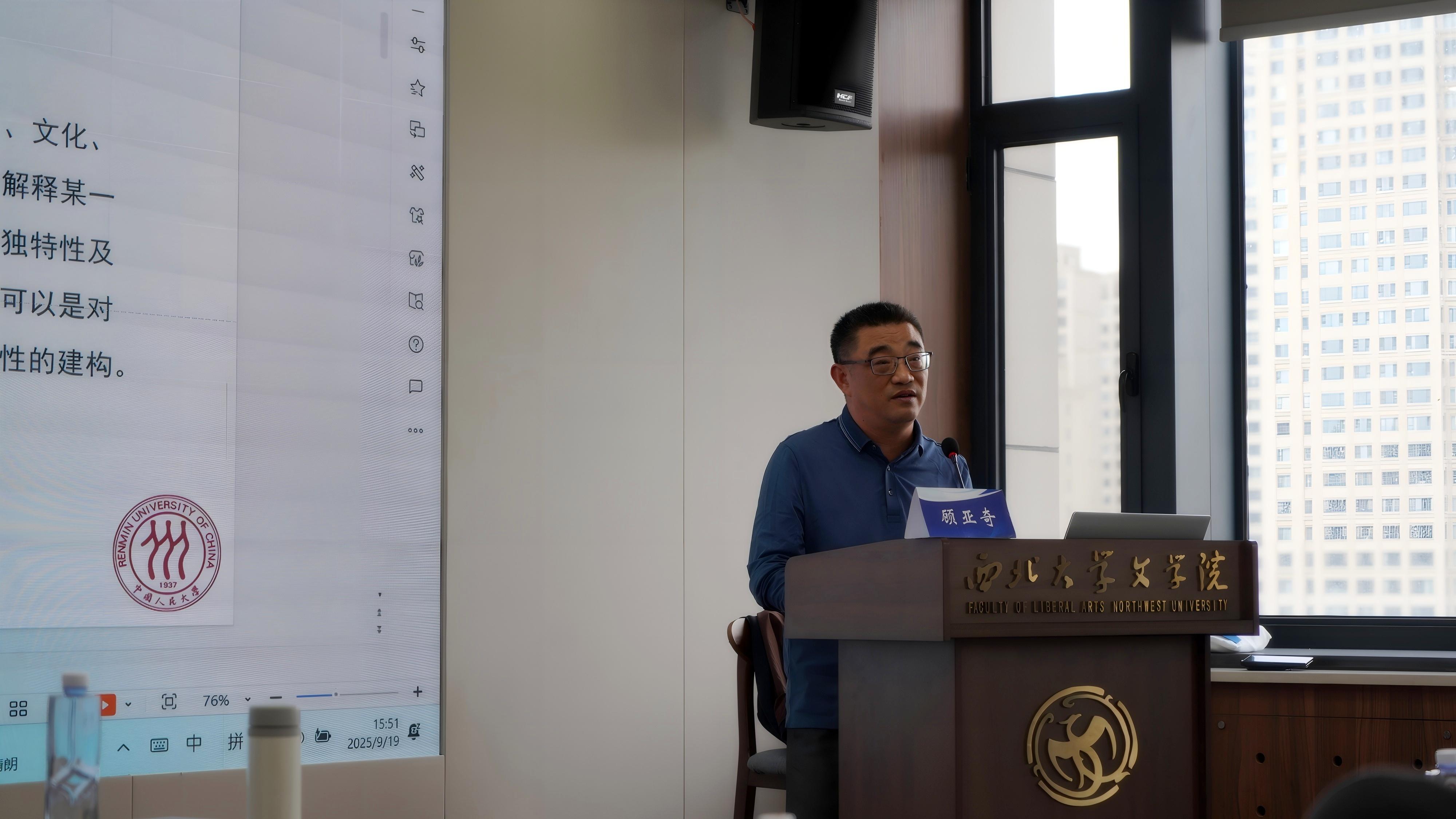 9月19日下午,中国人民大学“吴玉章”特聘教授、博士生导师、艺术学院副院长顾亚奇教授做客我校“侯外庐学术讲座”第448讲,为师生带来了题为“‘文明叙事’的视听表达与传播”的专题报告。讲座由张阿利教授主持,文学院六十余名师生齐聚一堂,共享学术盛宴。