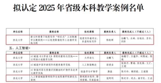 近日,文学院张阿利教授主持的《人工智能赋能影视创作全流程教学创新优化案例》、谷鹏飞教授主持的《AI赋能<大学语文>课程的重构与实践—以明清小说教学为例》、陈晓辉教授主持的《新文科背景下创意写作"项目式"...