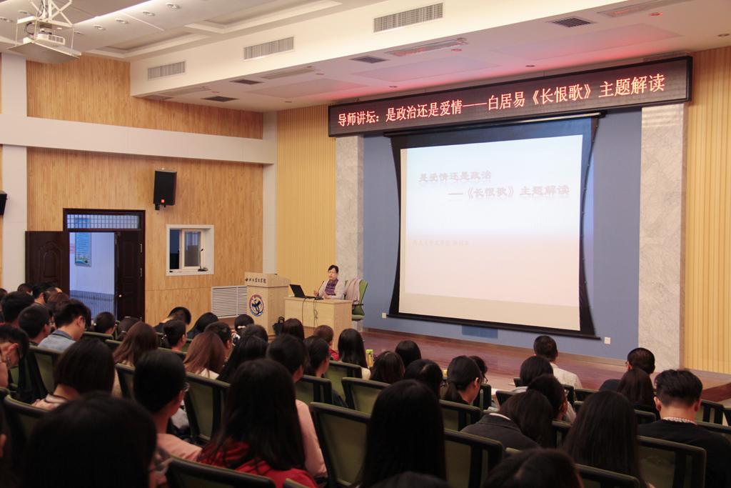 9月27日下午2点,由我校研究生部、研究生工作部主办,文学院承办的“导师讲坛”第八十三讲在西北大学长安校区审美文化报告厅举行。西北大学文学院郝润华教授作题为《是政治还是爱情——白居易长恨歌>主题解读》的...