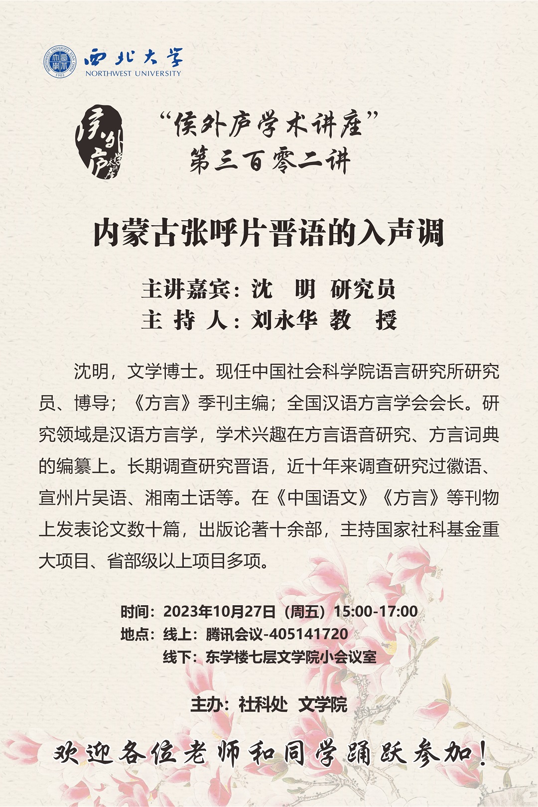 【侯外庐学术讲座】沈明:内蒙古张呼片晋语的入声调