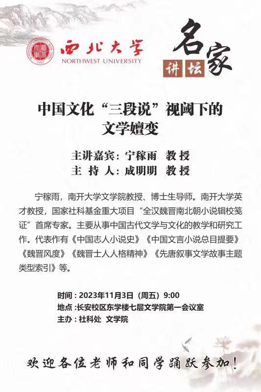 【名家讲坛】宁稼雨:中国文化“三段说”视阈下的文学嬗变