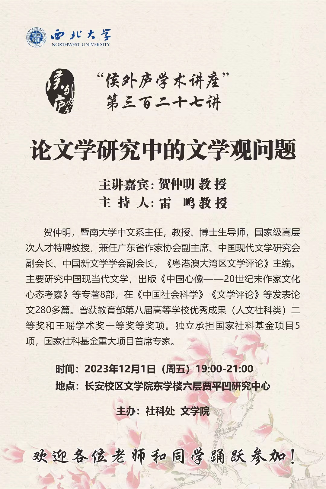 【侯外庐学术讲座】贺仲明:论文学研究中的文学观问题