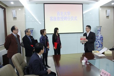 北美致公协会文化艺术团翟椿萍女士一行来我校访问 2013年10月30日上午,北美致公协会的翟椿萍、黄以功、姚君霓三位艺术家来我校访问并受聘为客座教授。聘任仪式由副校长陈超主持,校长方光华为三位艺术家颁发...