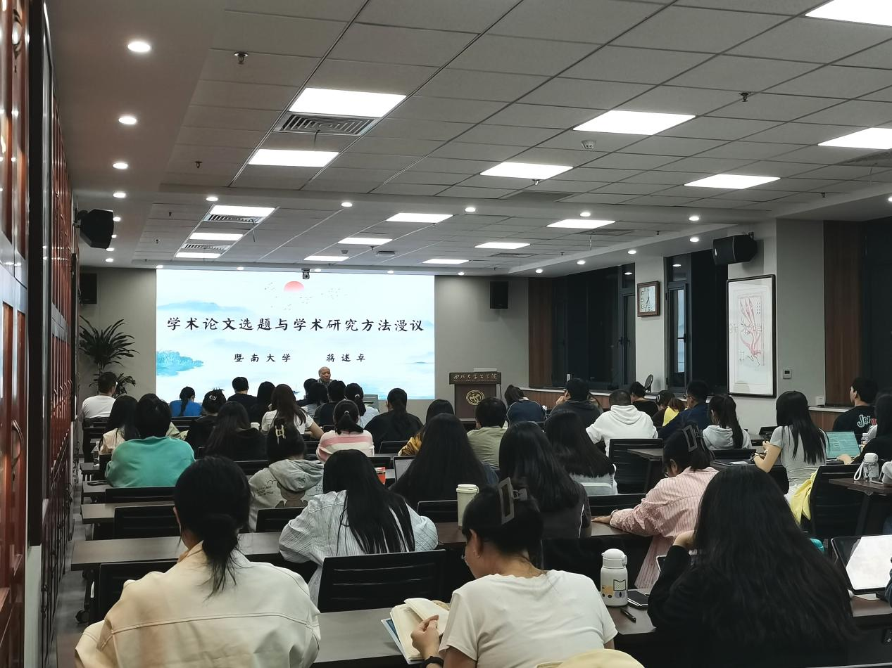 2024年10月21日晚19:30,暨南大学蒋述卓教授在我校长安校区东学楼7层701会议室作了题为《学术论文选题与学术研究方法漫议》的学术讲座。本次讲座由文学院院长谷鹏飞教授主持,我院杨新平、陈海、高翔、何明霞、陈...